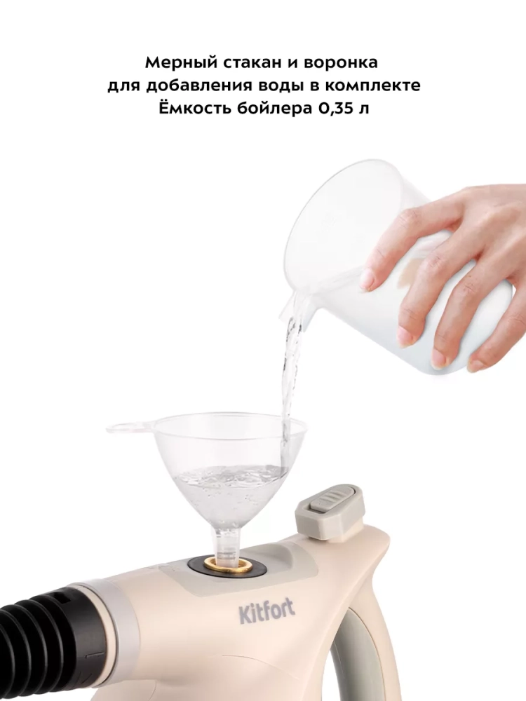 В устройство удобно наливать воду благодаря наличию воронки и мерного стакана.