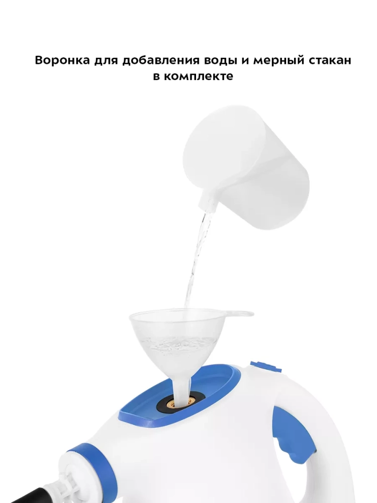 В устройство удобно наливать воду благодаря наличию воронки и мерного стакана.