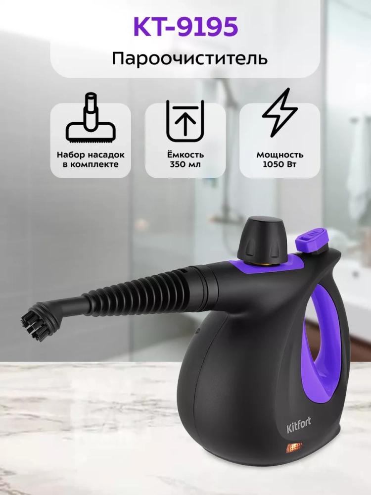 Пароочиститель Kitfort КТ-9195 — многофункциональный прибор, способный заменить паровую швабру, дезинфектор, стеклоочиститель и отпариватель для тканей. Используя струю горячего пара, пароочиститель отлично очищает поверхности и обеспечивает деликатную глажку вещей. Прибор очень удобен в использовании и работа с ним не требует особых навыков и умений.