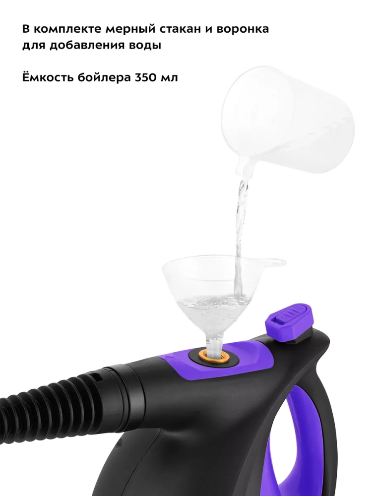 В устройство удобно наливать воду благодаря наличию воронки и мерного стакана.