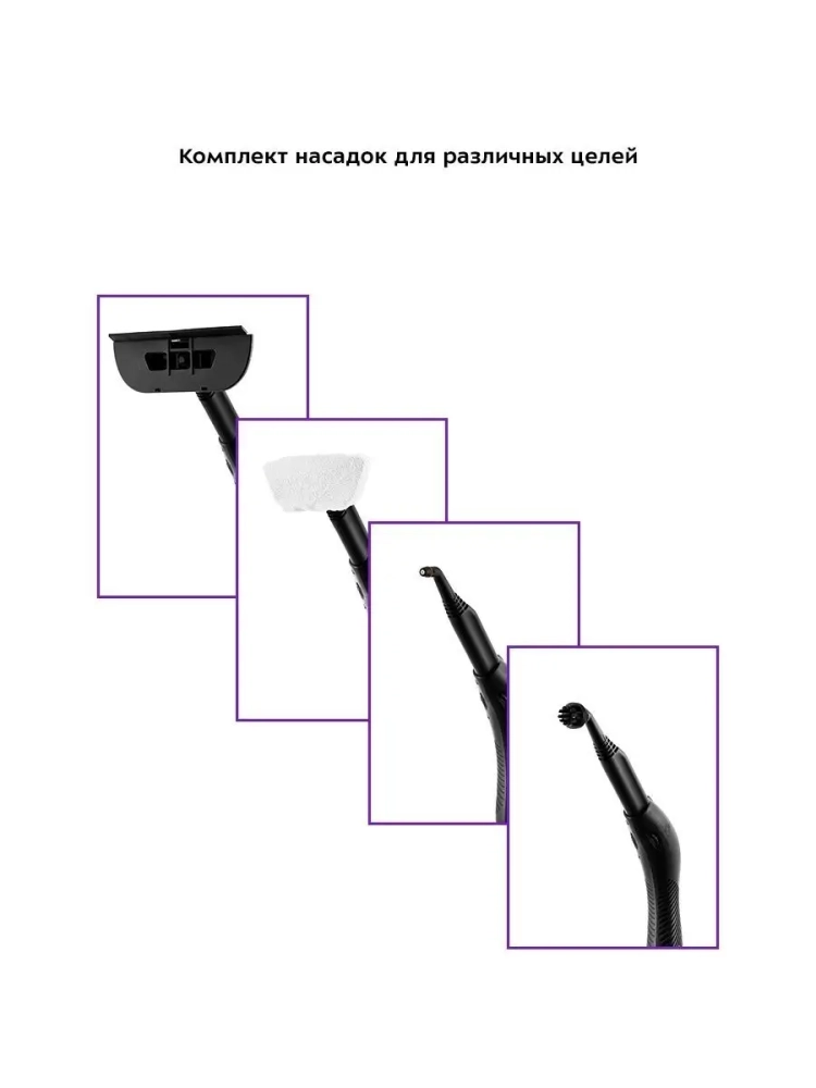 Для более сложных загрязнений предусмотрены вспомогательные насадки, такие как ворсовая щетка и скребок, которые позволяют добраться до труднодоступных мест, например, стыков арматуры, жалюзи и радиаторов отопления. Пароочиститель также подходит для чистки автомобилей, включая бамперы, радиаторы и моторные отсеки, а также для ухода за мотоциклами и велосипедами.
