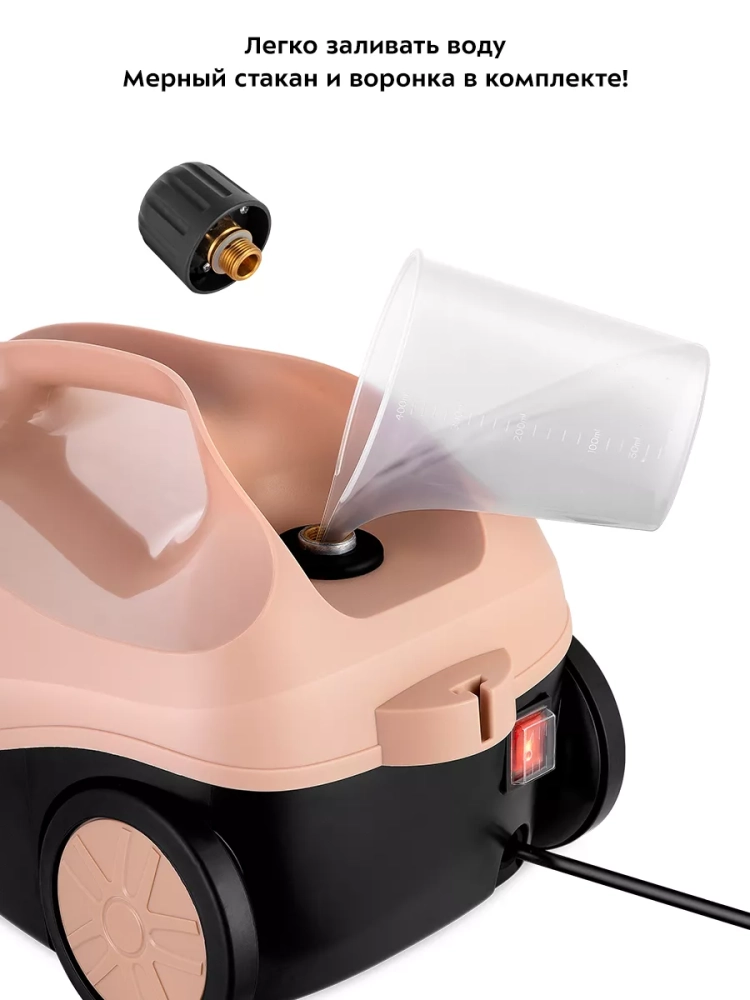 На корпусе пароочистителя есть ручка для переноски. Колеса позволяют с легкостью перемещать пароочиститель. Большое количество насадок в комплекте поможет очистить труднодоступные или сильнозагрязненные поверхности. Идеальный подарок на любой случай: на Новый год, 23 февраля, 8 марта, день рождения, свадьбу или юбилей!