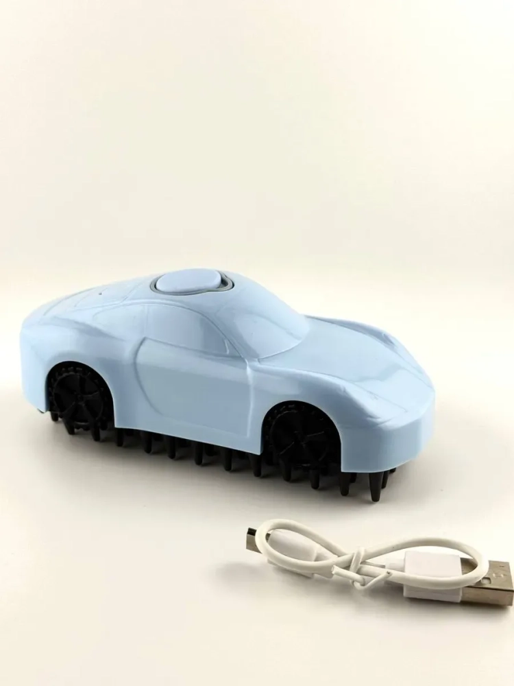 Электрическая массажная щётка в форме машины – оригинальный гаджет для ухода за кошками и собаками. Устройство помогает одновременно вычесывать шерсть, убирать выпавший пух и делать лёгкий массаж, который нравится питомцам. Работает от USB, зарядка входит в комплект.