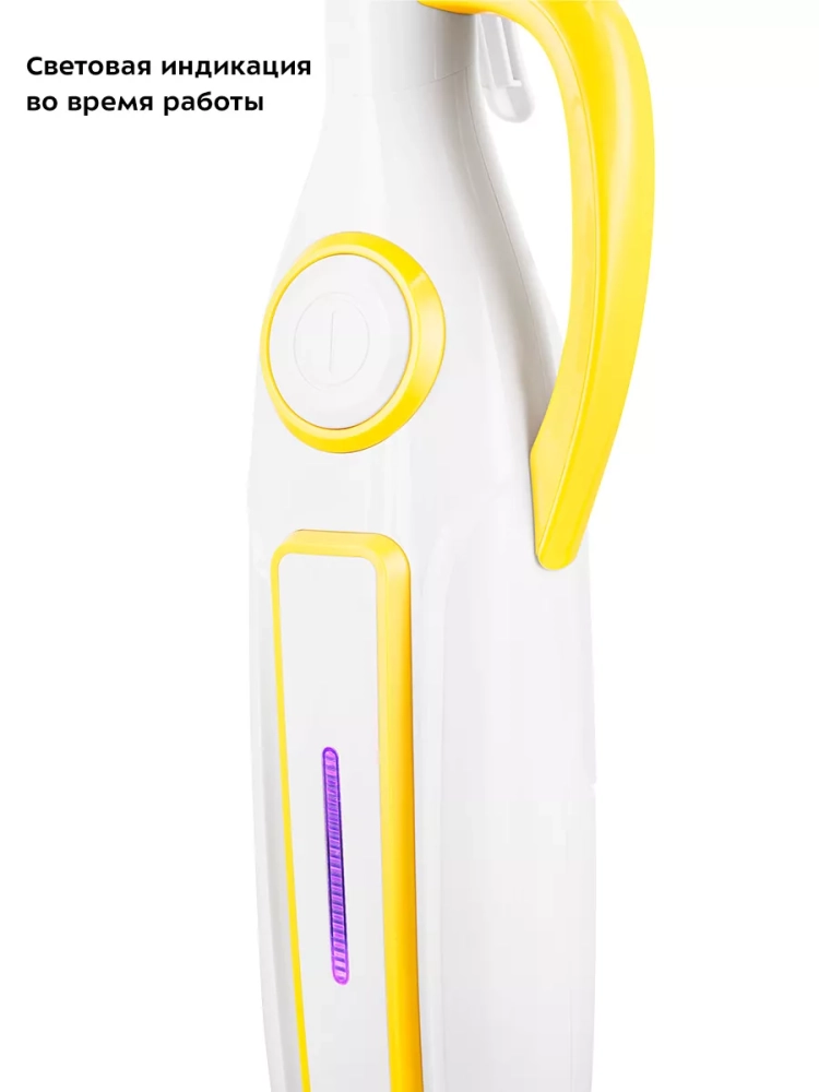 Паровая швабра обладает функцией вертикальной парковки и большим углом наклона при уборке, который поможет убрать пространство под мебелью. Напольная щетка закреплена на специальном шарнире с наклоном в двух плоскостях, что делает швабру маневренной и облегчает уборку. А сама ручка имеет телескопическую конструкцию, что позволяет выбрать необходимую длину ручки. На удлинительной ручке предусмотрены держатели для шнура.