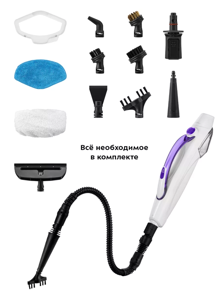 Паровая швабра Kitfort КТ-1085 — универсальное устройство, которое поможет избавиться от пыли и грязи с помощью мощной струи пара, а также продезинфицирует обрабатываемую поверхность. При помощи специальных насадок из комплекта КТ-1085 очистит напольные покрытия, раковину и плиту на кухне, зеркала, окна и плитку в ванной без каких-либо химических средств, исключительно паром.
