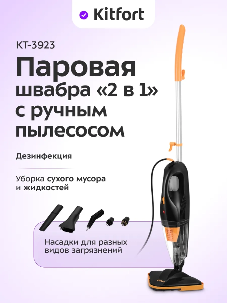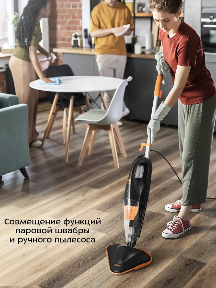 Паровая швабра «2 в 1» с ручным пылесосом КТ-3923 станет вашим главным помощником в уборке, который позволит навести чистоту на всех поверхностях.
