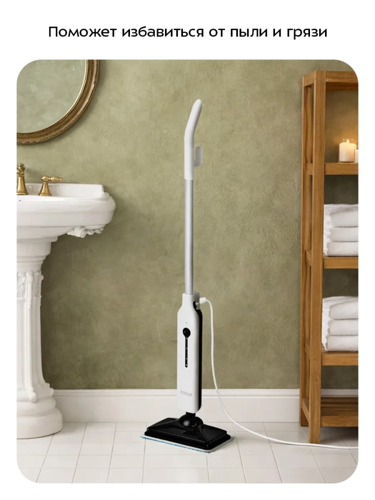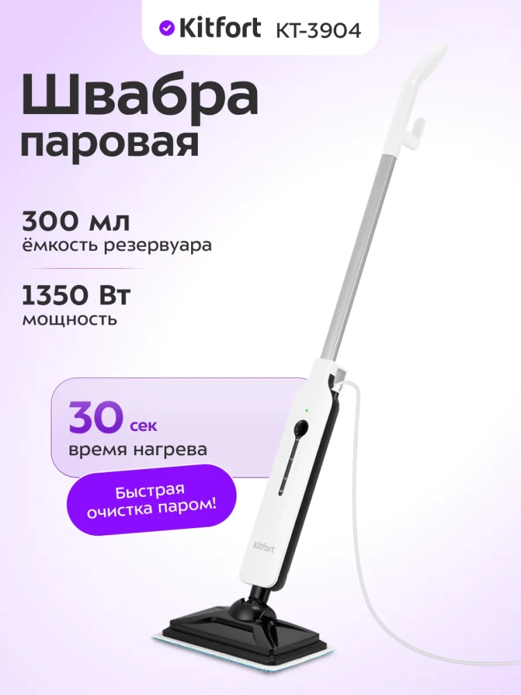 КТ-3904 очень легкая и простая в использовании. Также у паровой швабры предусмотрены держатели для шнура. Уборка с такой шваброй будет проходить быстро и легко.