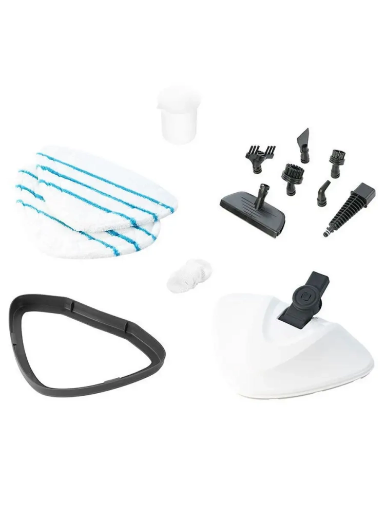 Паровая швабра с насадками КТ-1008 от Kitfort — это многофункциональный прибор, который станет незаменимым помощником при уборке в вашем доме. Основной принцип работы парогенератора заключается в использовании горячего пара для эффективного удаления загрязнений. Идеальный подарок на любой случай: на Новый год, 23 февраля, 8 марта, день рождения, свадьбу или юбилей! Пар проникает внутрь грязи, размягчая и растворяя её, после чего остатки легко удаляются тряпкой или щеткой. Высокая температура пара способствует тщательной очистке даже самых стойких загрязнений. Этот электрический пароочиститель может выполнять функции пяти различных устройств: паровой швабры, ручного пароочистителя, стеклоочистителя, отпаривателя для одежды и дезинфектора. При установке удлинительной ручки и щетки для пола он превращается в удобную парошвабру. Если отсоединить ручку и щетку, устройство становится компактным ручным очистителем для чистки кафеля, сантехники или кухонных плит. Для мытья окон и зеркал используйте специальную насадку со скребком — так ваш прибор превратится в стеклоочиститель. Парогенератор также отлично справляется с функцией отпаривателя одежды благодаря мощному потоку пара. Дезинфекция помещений с помощью этого устройства становится простой задачей: горячий пар эффективно уничтожает пылевых клещей и плесень, что особенно важно для людей с аллергией или астмой. Мощность прибора составляет 1500 Вт при объеме резервуара 370 мл — это обеспечивает длительную работу без частых перерывов на долив воды. Мыть поверхности становится гораздо проще. Многофункциональность устройства позволяет использовать его как дома на полу так и на других поверхностях.