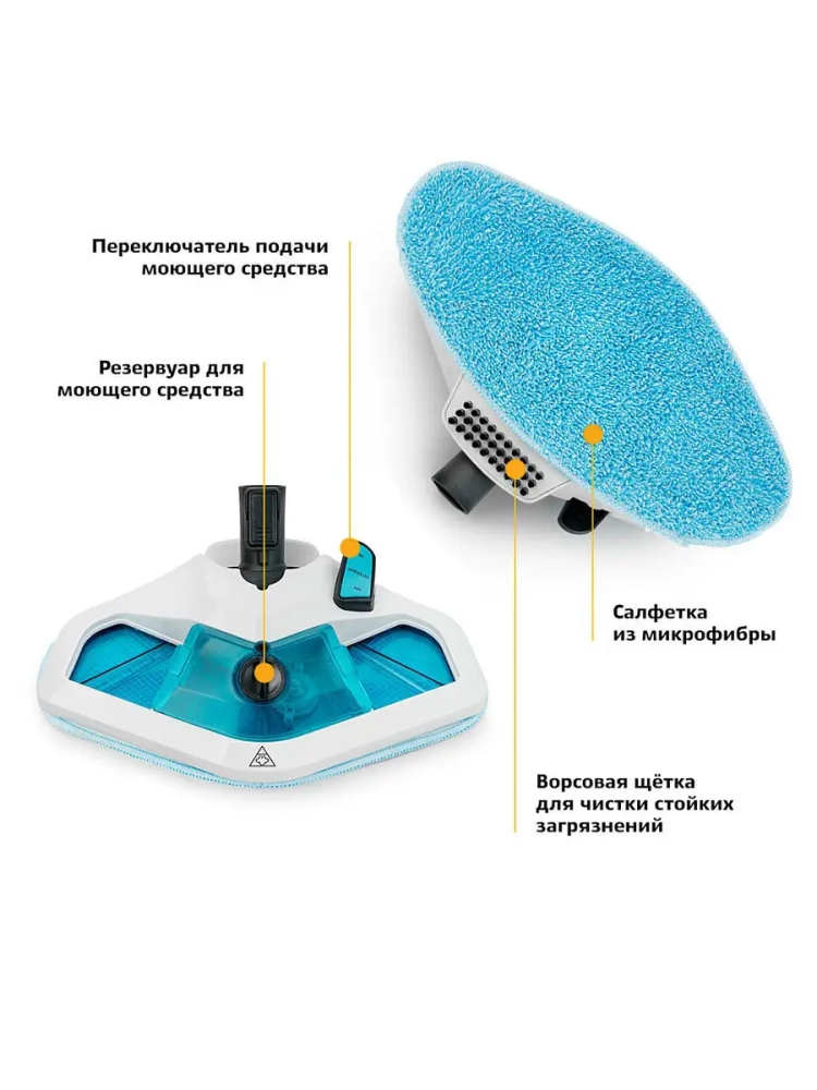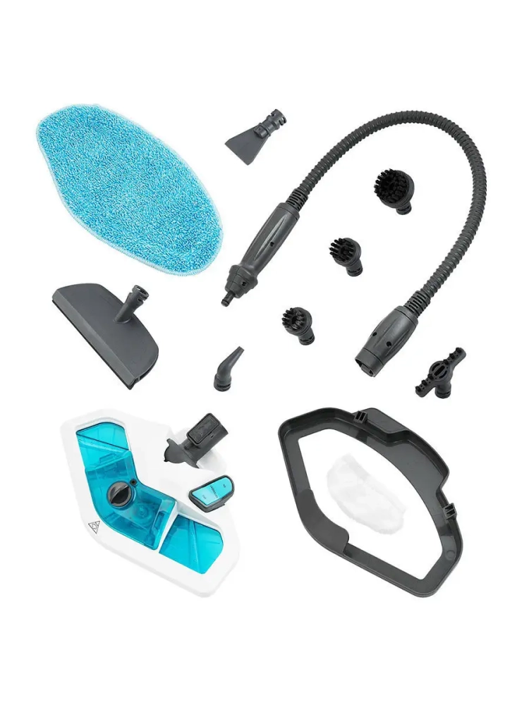 Если вынуть ручной модуль из базового блока, то швабра превращается в ручной пароочиститель или отпариватель. Им можно чистить паром различные поверхности и предметы: кафель и швы между плитками, сантехнику для кухни и ванны, духовки, плиты, СВЧ печи, жировые и известковые отложения. Для усиления механического воздействия в комплекте идут ворсовые щетки и скребок.