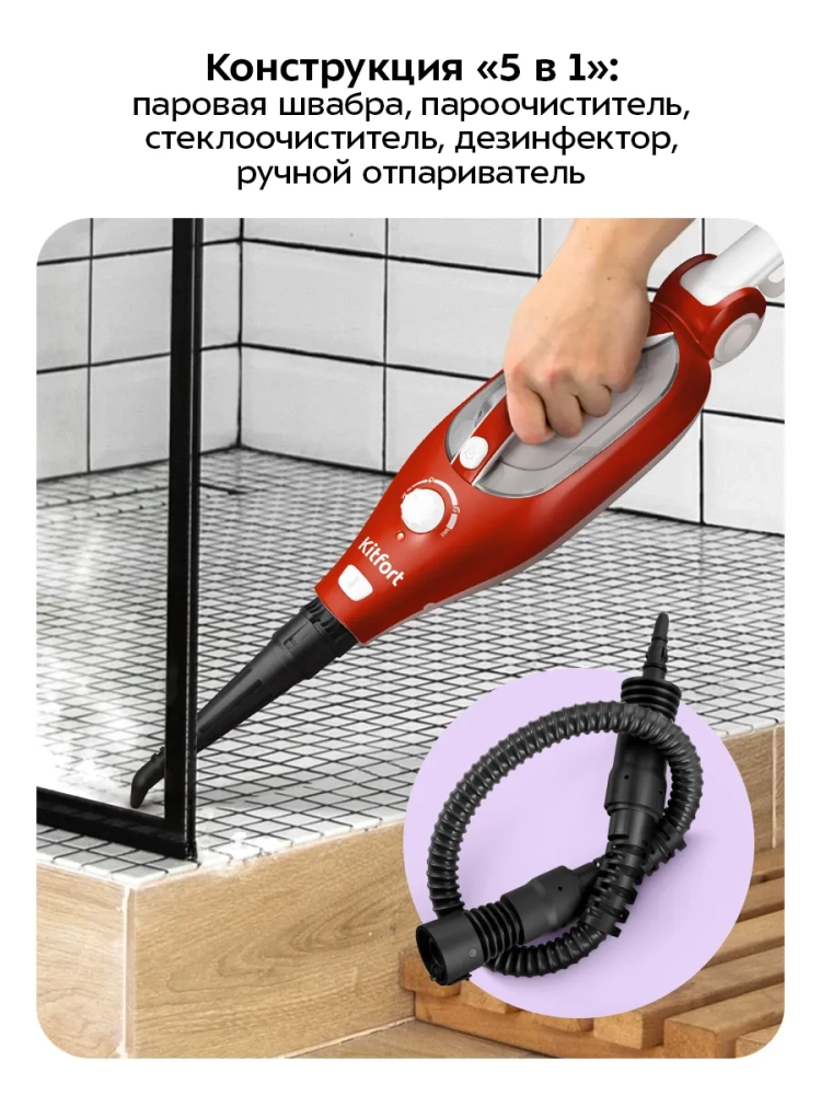 Паровая швабра с насадками КТ-1005 (5 в 1) - 1500 Вт