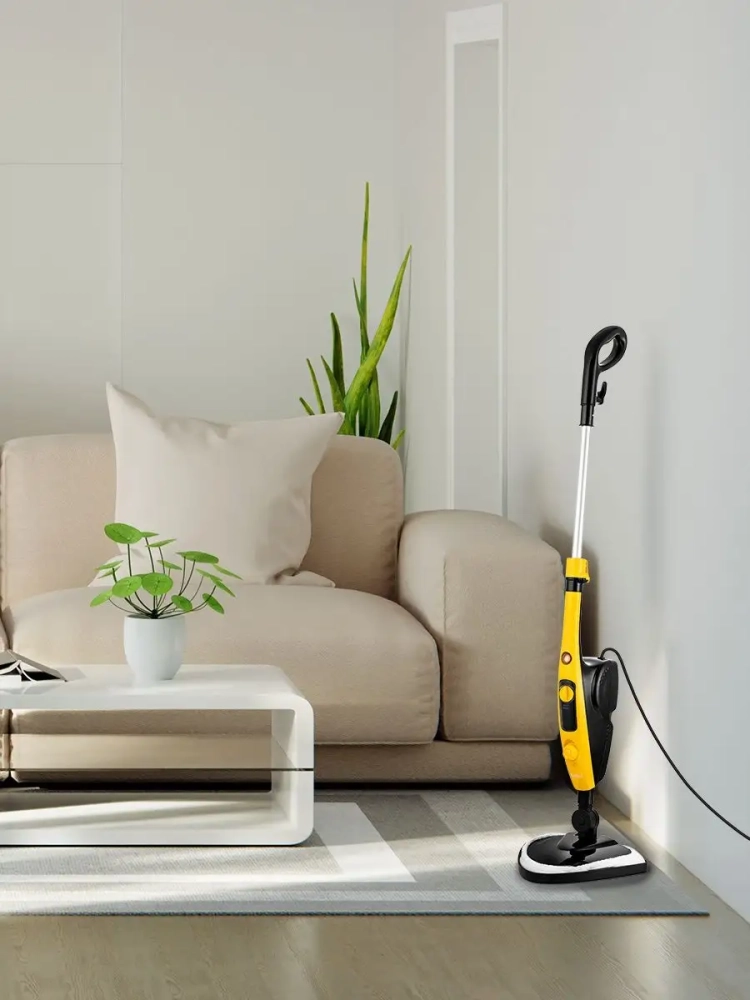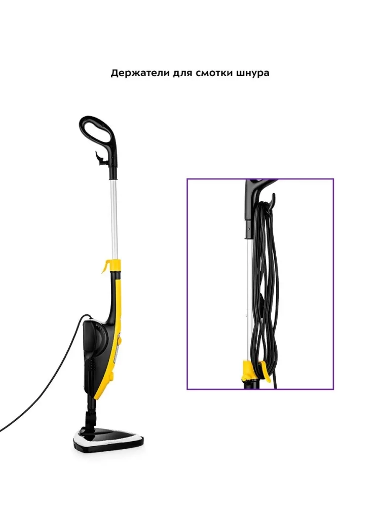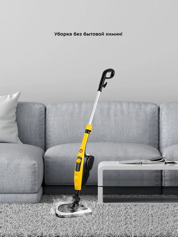 Паровая швабра обладает функцией вертикальной парковки и большим углом наклона при уборке, который поможет легко убирать пространство под мебелью. Напольная щетка закреплена на специальном шаровом шарнире с наклоном в двух плоскостях, что делает швабру очень маневренной и облегчает уборку.