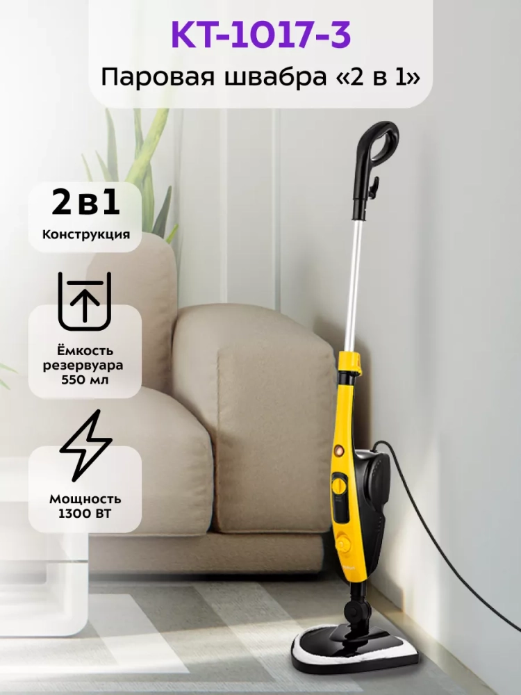 Паровая швабра с насадками КТ-1017 (2 в 1) - 1300 Вт