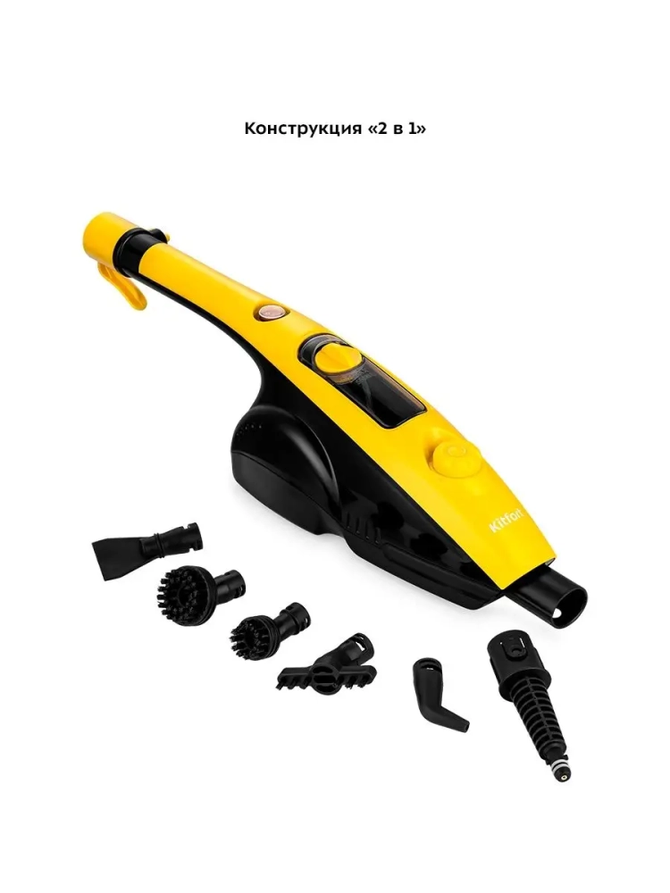 Конструкция «2 в 1» предусматривает наличие ручного модуля, который удобно использовать с насадками. С помощью насадок можно очистить большинство вещей в доме: легко отмыть окна, почистить шторы и мягкую мебель. Нейлоновые щетки и скребок эффективно очищают сложные загрязнения с помощью механического воздействия. Для очистки окон, зеркал и кафельной плитки предусмотрена специальная насадка для отпаривания со скребком. Ее можно использовать с тряпкой для отпаривания, чтобы отпаривать одежду и чистить обивку мягкой мебели. Струйная и угловая насадка помогут очистить щели, углы и другие труднодоступные места.