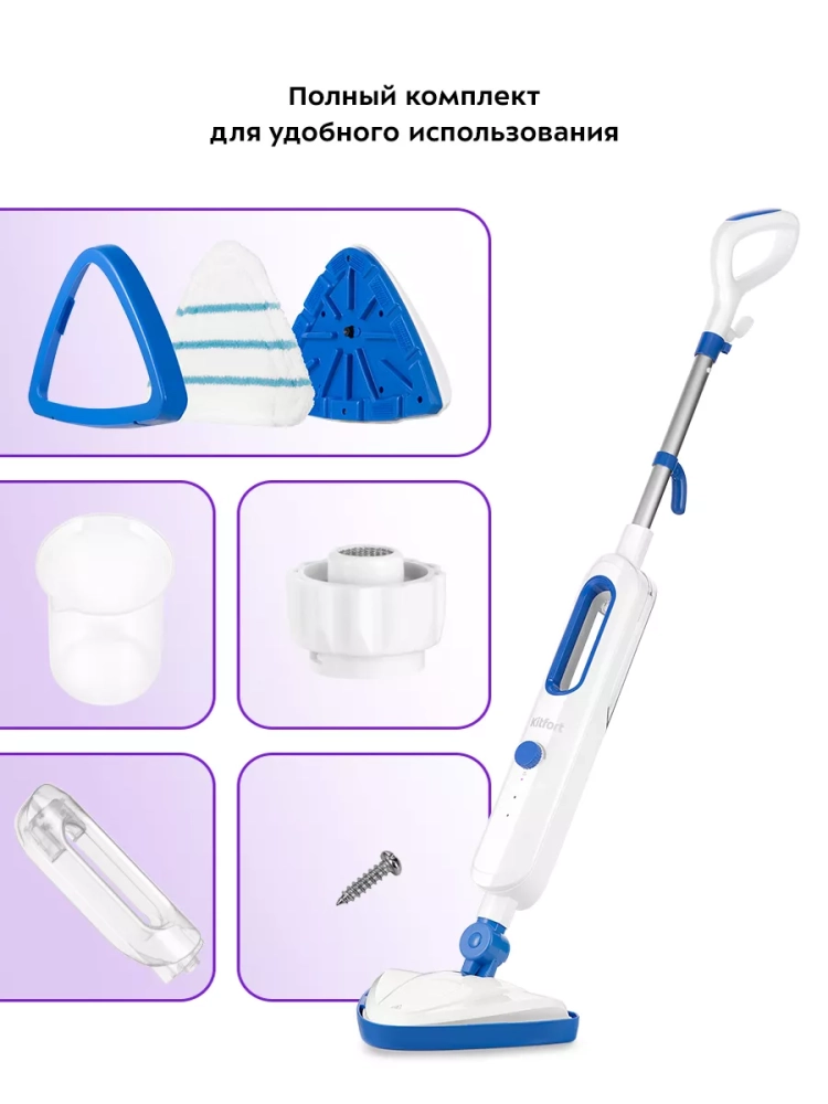 Паровая швабра Kitfort КТ-1048 — универсальное устройство, которое поможет избавиться от пыли и грязи с помощью мощной струи пара, а также продезинфицирует обрабатываемую поверхность. Устройство оснащено резервуаром для воды емкостью 360 мл, что позволяет производить непрерывную уборку 13–20 минут.