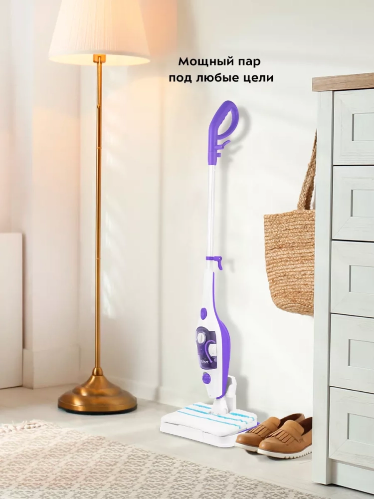 Для паровой швабры не нужны чистящие средства, поэтому она станет идеальным решением уборки дома для аллергиков. В комплекте предусмотрена рамка для ковра, которая обеспечивает легкое скольжение щетки для пола по ковру.