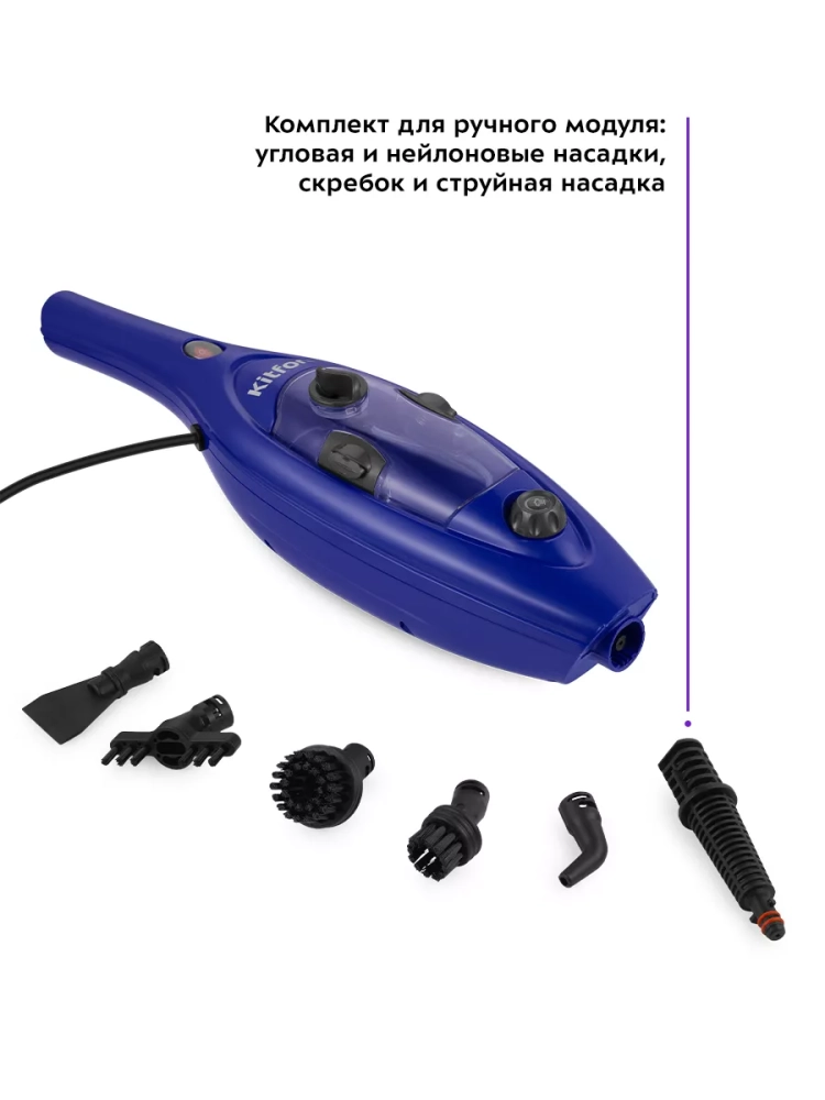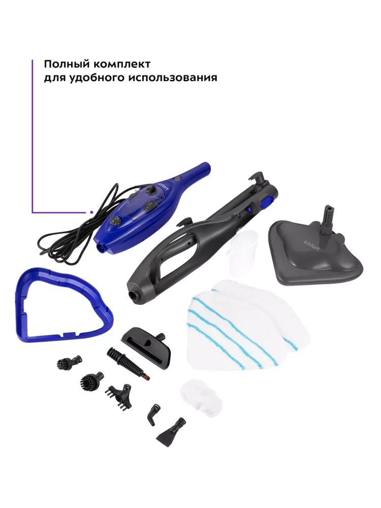 Паровая швабра Kitfort КТ-1059 — универсальное устройство, которое поможет избавиться от пыли и грязи с помощью мощной струи пара, а также продезинфицирует обрабатываемую поверхность. Паровая швабра очистит раковину и плиту на кухне, зеркала и мебель без каких-либо химических средств, исключительно паром.