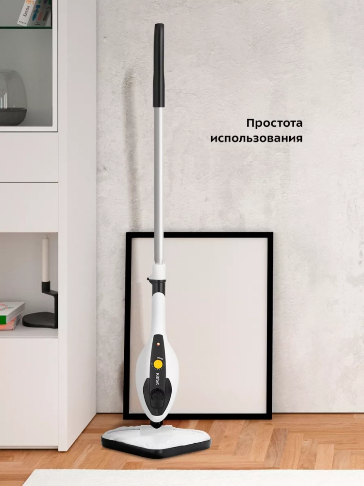 Паровая швабра КТ-1073 проста в использовании: подача пара начитается сразу после нагрева бойлера. Уборка с паровой шваброй будет проходить быстро и легко.