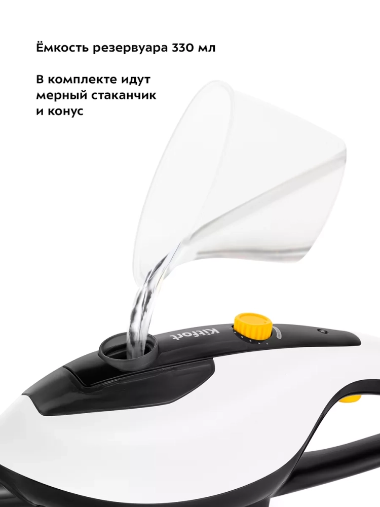Паровая швабра КТ-1073 оснащена несъемным резервуаром для воды емкостью 330 мл, что позволяет производить непрерывную уборку в течение 11–16 минут.