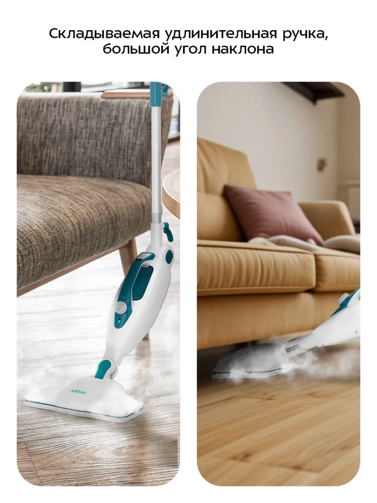 Паровая швабра КТ-1080 очень легкая и простая в использовании. Уборка с ней будет проходить быстро и легко.
