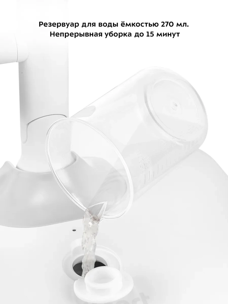 Паровая швабра КТ-1020 оснащена резервуаром для воды емкостью 270 мл, что позволяет производить непрерывную уборку паром до 15 минут.