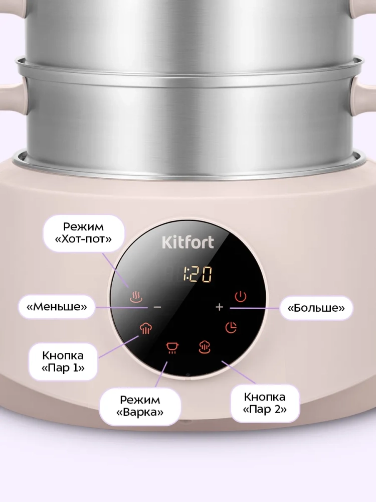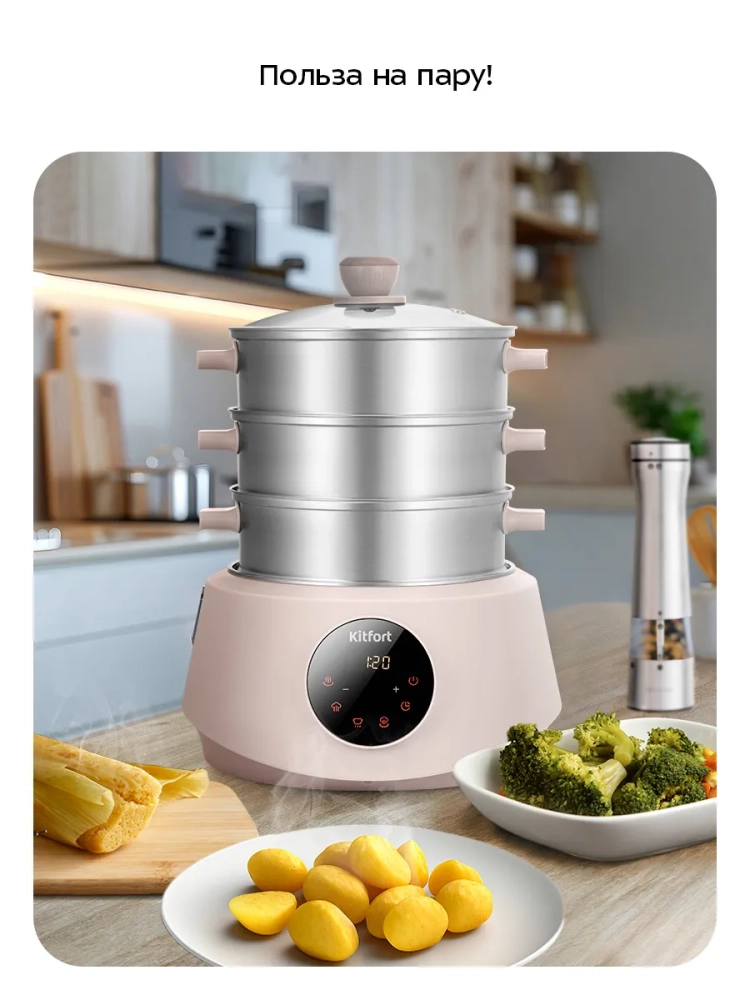 Пароварка «2 в 1» Kitfort КТ-9928 приготовит вам вкусные и питательные блюда, сохранив все полезные витамины и микроэлементы, содержащиеся в продуктах. Приготовленные в пароварке продукты получаются нежными, мягкими и сочными. Пароварка станет надежным помощником для всех, кто питается диетическими блюдами и просто заботится о правильности своего питания.