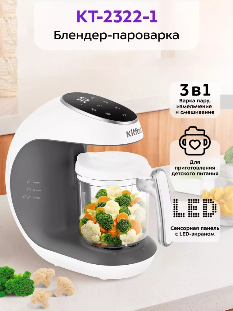 Пароварка-блендер Kitfort — это не только удобство, но и экономия времени. Благодаря этому прибору, родители могут быстро приготовить столовые блюда для детей, начиная с первого годика. Приборы Kitfort — это надежные помощники на кухне, которые делают процесс приготовления детского питания простым и приятным.