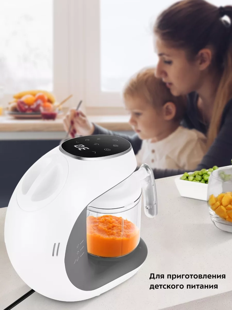 Блендер, встроенный в прибор, позволяет измельчать продукты до нужной консистенции, что особенно важно для прикорма малышей. Чаша с крышкой и моторный блок обеспечивают надежность и безопасность в процессе использования. Управление прибором интуитивно понятное, что делает его доступным для использования даже в условиях ограниченного времени.