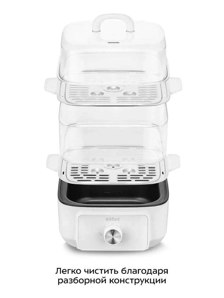 С помощью пароварки Kitfort КТ-6484 вы сможете приготовить вкусные и питательные блюда, сохранив все полезные витамины и микроэлементы, содержащиеся в продуктах. Приготовленные в пароварке продукты получаются нежными, мягкими и сочными. Пароварка станет надежным помощником для всех, кто питается диетическими блюдами и придерживается правильного питания.