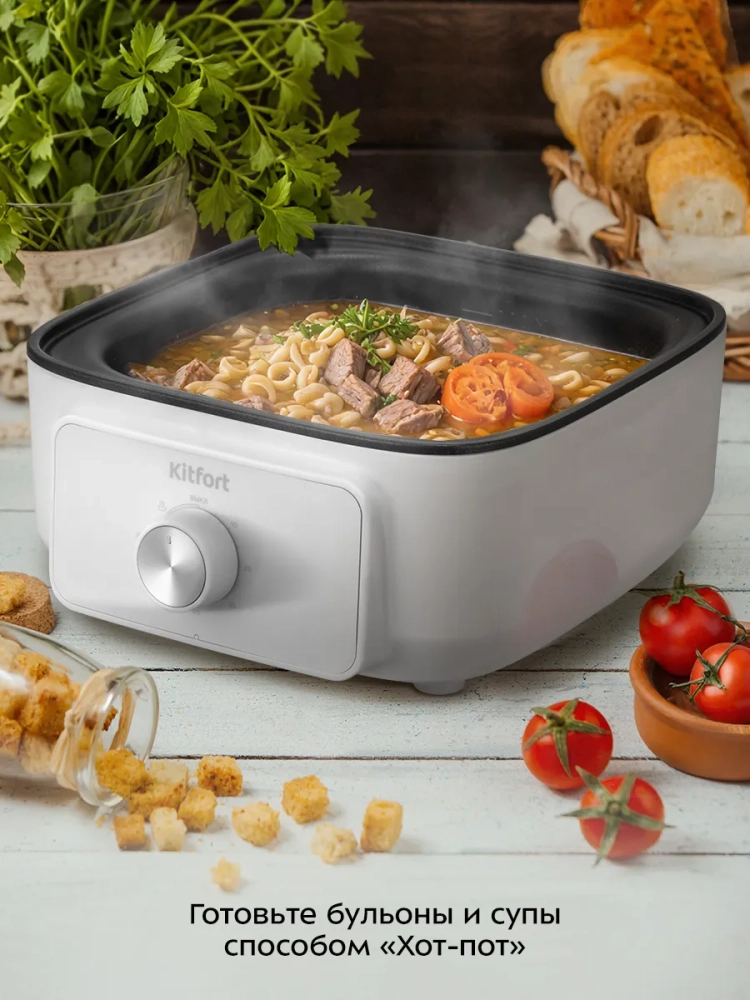 Пароварка КТ-6484 позволяет выбрать время приготовления до 60 минут, а также включить режим «Хот-пот». Способ приготовления и блюдо «Хот-пот» были изобретены на севере Китая и позволяли накормить большую семью. «Хот-пот» переводится как горячий горшок; суть приготовления блюда «Хот-пот» заключается в том, что в кастрюле или глубокой тарелке непрерывно варится бульон, после закипания туда кладутся разные ингредиенты, которые подготовлены заранее, например, мясо, морепродукты, грибы, капуста, лапша. По мере готовности продукты достаются из бульона, а бульон продолжает вариться, цикл приготовления продолжается, пока бульон не кончится. В данной пароварке кастрюлю заменяет резервуар для воды.