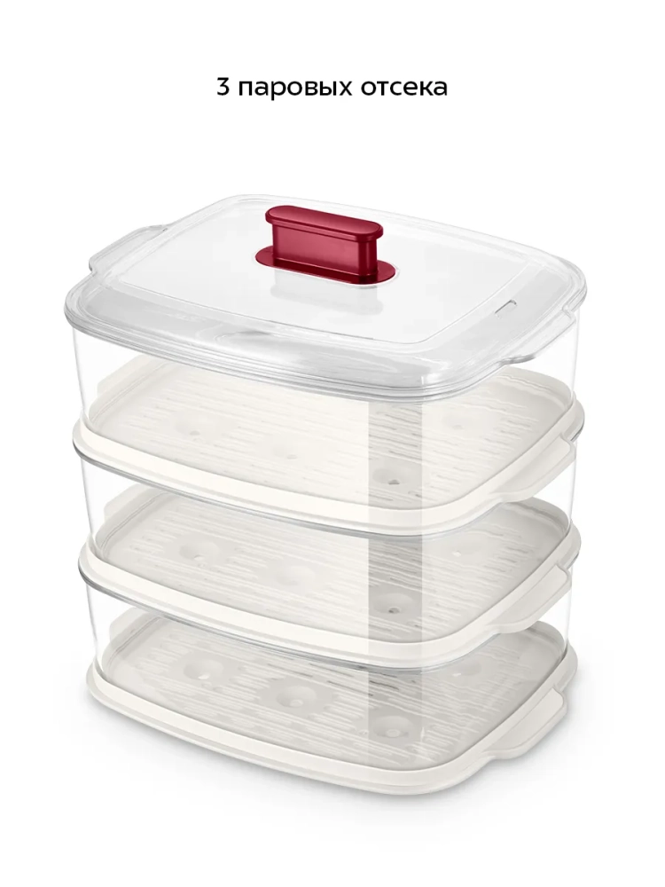Пароварка оснащена тремя паровыми отсеками, что позволит приготовить обед или ужин из нескольких блюд сразу на всю семью.