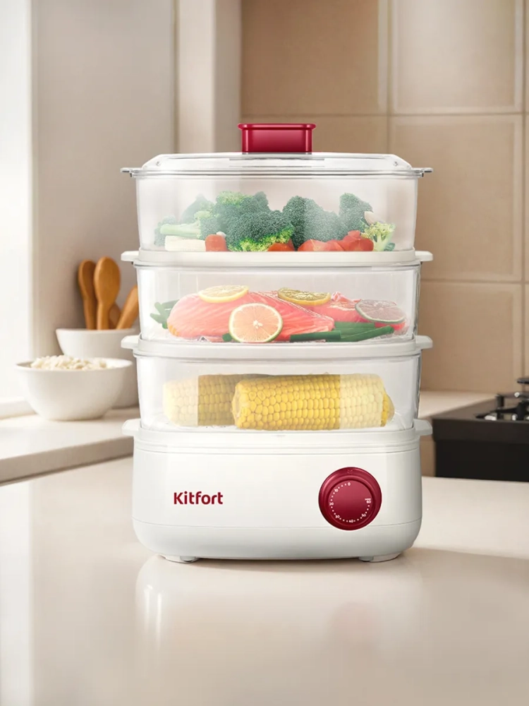 Одно из основных преимуществ пароварки — это возможность готовить сразу несколько типов продуктов, например гарнир и мясо, что уменьшает время, проведенное на кухне. С пароваркой КТ-6830 вы получите полезные блюда с минимумом усилий.