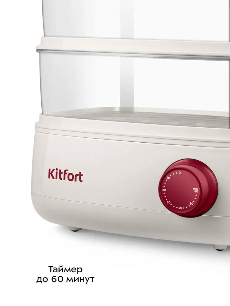 Пароварка КТ-6830 позволяет устанавливать время приготовления до 60 минут.