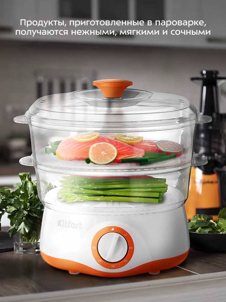 Электрические приборы от Kitfort, такие как эта пароварка, являются надежными помощниками на кухне, совмещая в себе инновационные технологии и простоту эксплуатации. Переработанная техника для приготовления на пару, с ее помощью каждая вещь на кухне будет дополнена функциональностью и стилем.