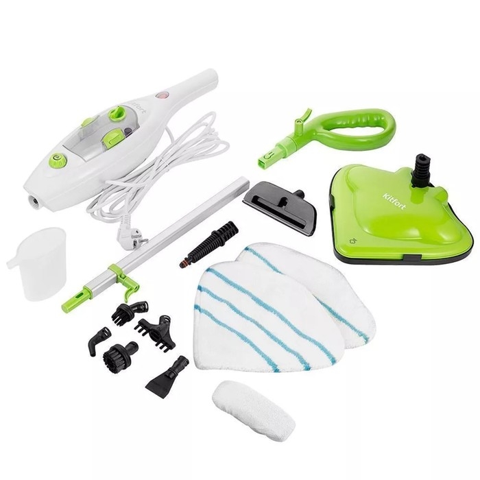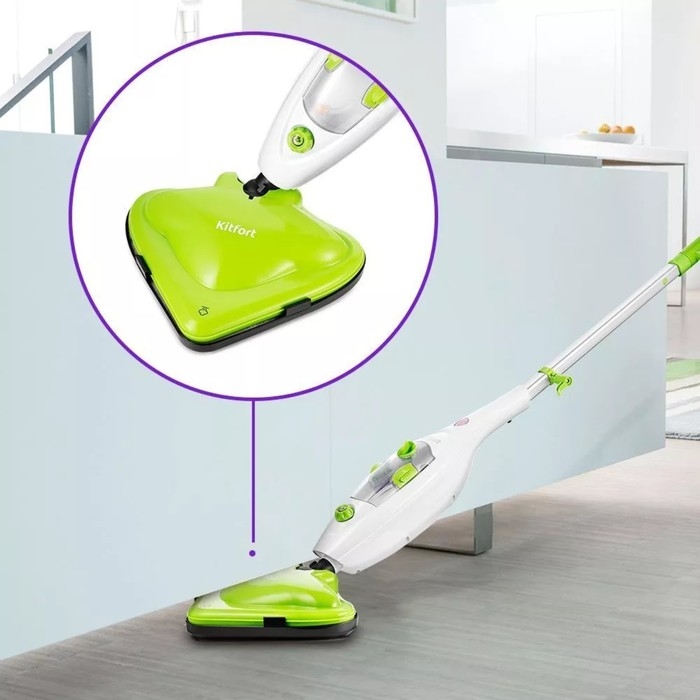 Паровая швабра Kitfort KT-1060, 1300 Вт, 300 мл, шнур 4.7 м, бело-зелёная