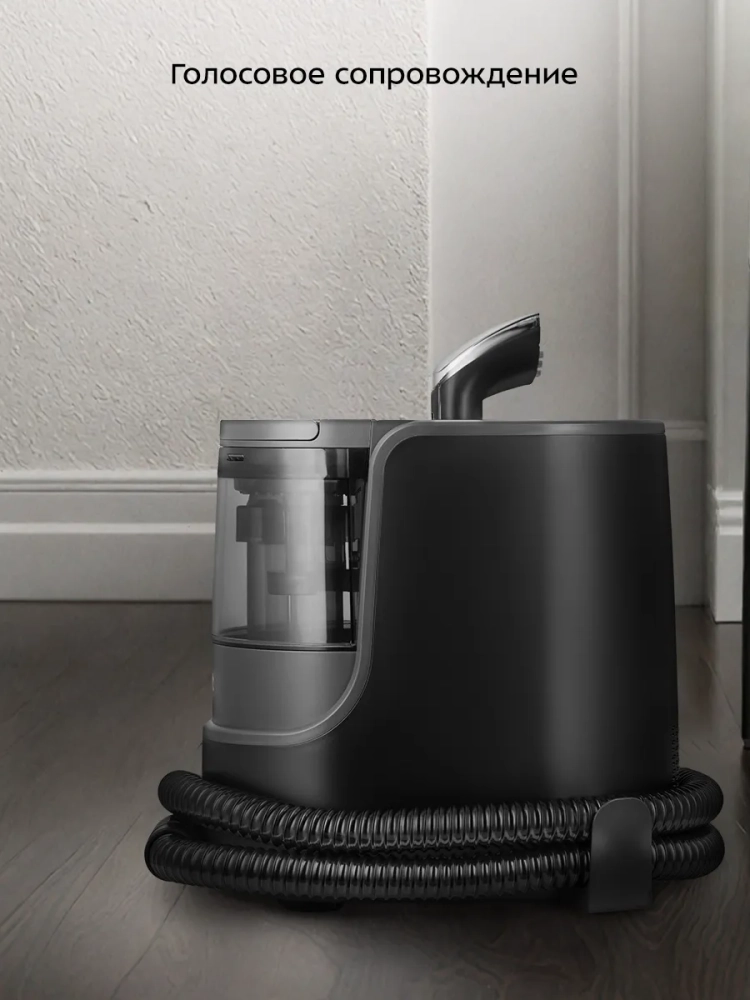 Паровой моющий пылесос оснащен голосовым сопровождением — он подает голосовые команды, которые делают использование пылесоса еще более удобным и понятным.