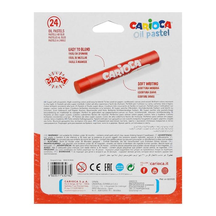 Пастель масляная 24 цвета, Carioca Oil Pastel, премиум яркая, супермягкая, картон, европодвес