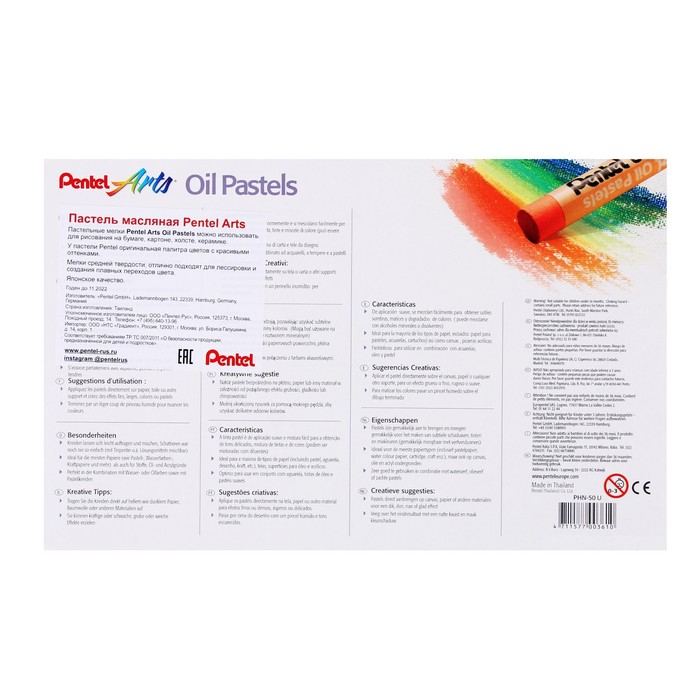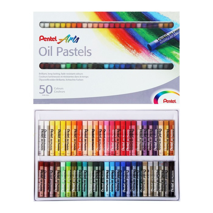 Пастель масляная, 50 цветов, Pentel, 8/60мм, в картоне