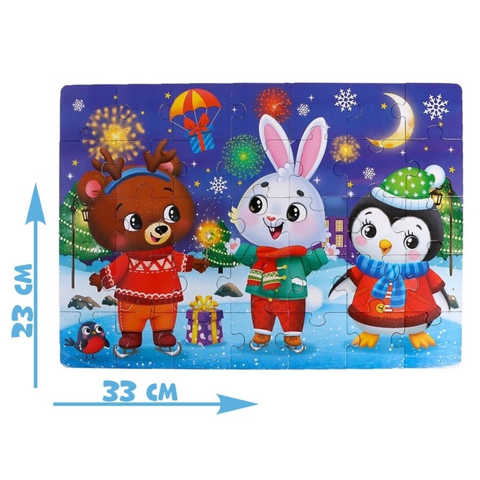 Пазл «Дед Мороз и зайцы», 35 деталей