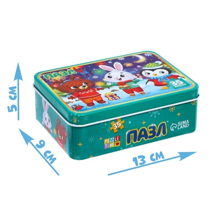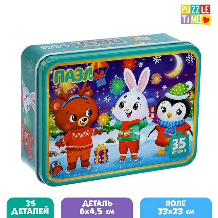Пазлы в металлической коробке «Праздник у зверят», 35 деталей