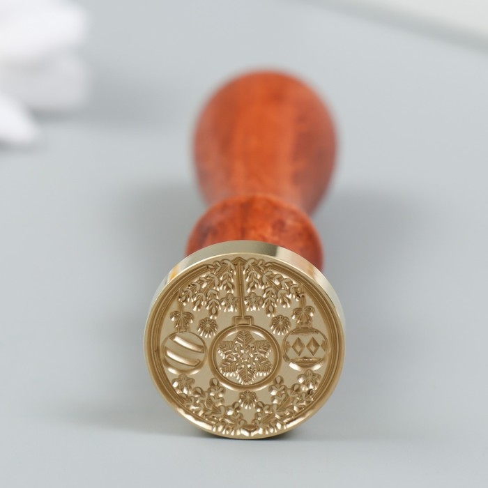 Печать для сургуча с деревянной ручкой "Ёлочные украшения" 9х2,5х2,5 см