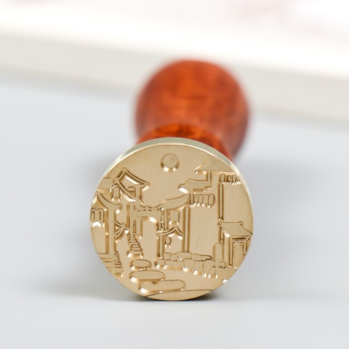 Печать для сургуча с деревянной ручкой "Городская улочка" 9х2,5х2,5 см