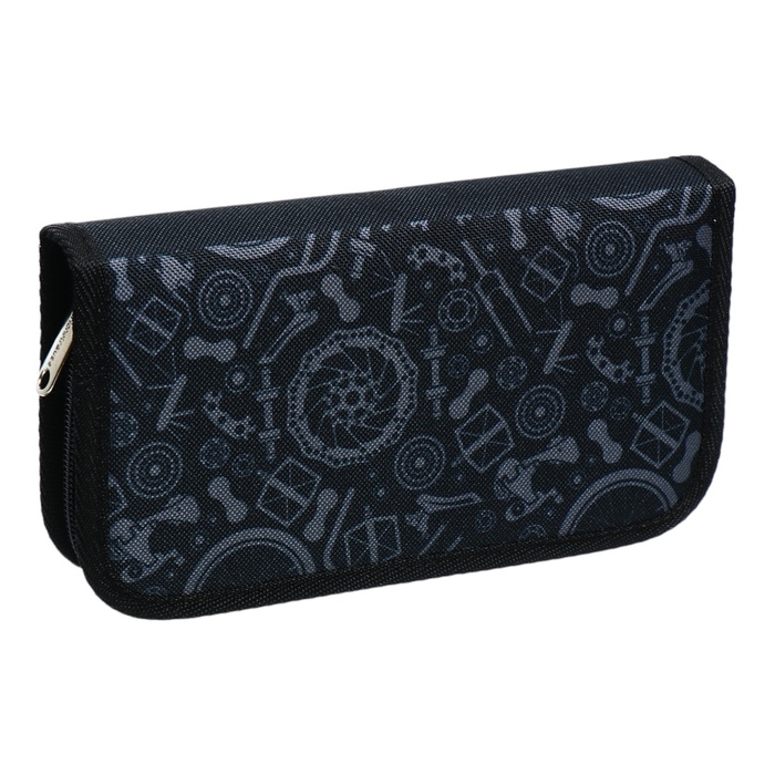Эта модель размерами 11x20,5x2,5 см представляет собой классический жестко-каркасный пенал-книжку с удобной системой фиксации школьных принадлежностей. Материал пенала – износостойкий и прочный 100% полиэстер 600D. У пенала имеется надёжная расширенная молния с мягким ходом, что облегчает частое закрытие и открывание. Наполнение (11 предметов): ручка шариковая, синие чернила: 2 шт., ручка шариковая, черные чернила: 1 шт., чернографитный карандаш HB: 1 шт., фломастеры: 4 цвета, ластик: 1 шт., точилка: 1 шт., линейка пластиковая 15 см: 1 шт. Пенал-книжка удобен для школы, а его дизайн делает его весьма модным аксессуаром.