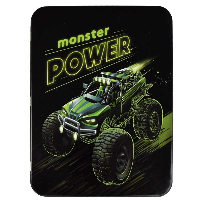 Пенал-органайзер для пишущих принадлежностей. МОНСТР-ТРАК. Материал: металл. Комплектность: без наполнения. Размер: 23,5x17,5x2 см. Количество отделений - 1. Отделка: полноцветная печать. Индивидуальная упаковка: ПЭТ-пакет.