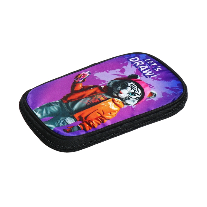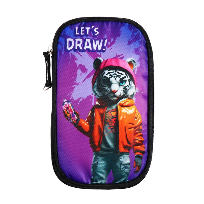 Пенал-футляр мягкий 125 х 210 х 25 мм, текстильный, Феникс "Белый тигр"