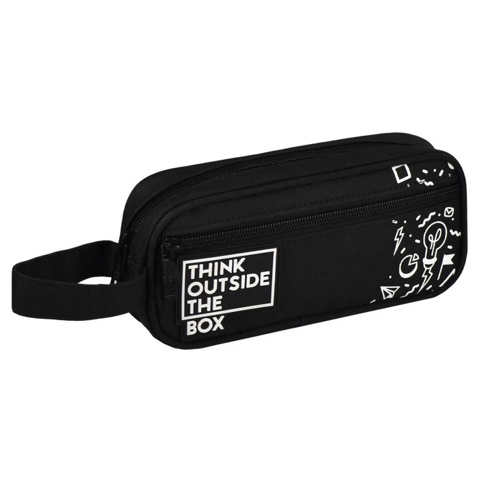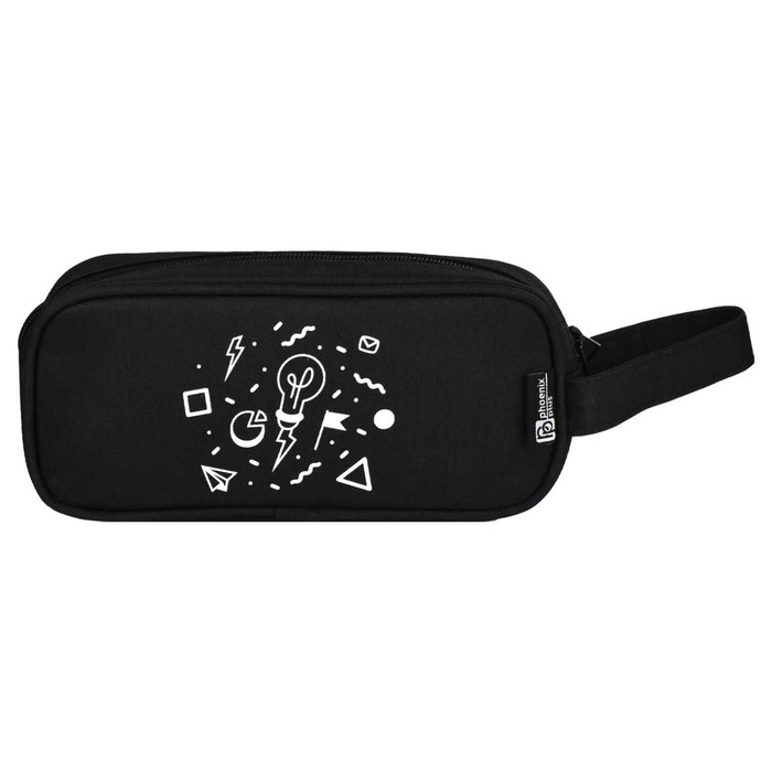 Пенал мягкий, 1 отделение, 90 х 190 х 15 мм, объёмный, Феникс "Теги" с ручкой, чёрный 64200