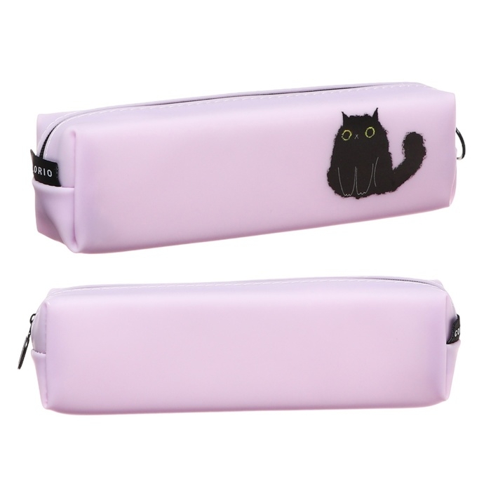 Пенал мягкий, 1 отделение, 40 х 190 х 50 мм, объёмный, Colorio "Кот", силиконовый, сиреневый