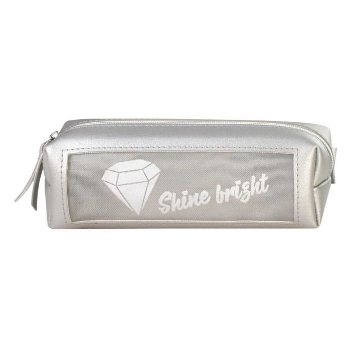 Пенал мягкий, 1 отделение, 55 х 195 х 60 мм, объёмный, искусственная кожа, с окном, нейлон, Феникс "Бриллиант" серый 61313