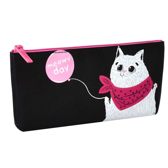 Пенал мягкий, 1 отделение, 85 х 200 х 25 мм, объёмный, Феникс "Бандана бэнд" чёрный/розовый 61299