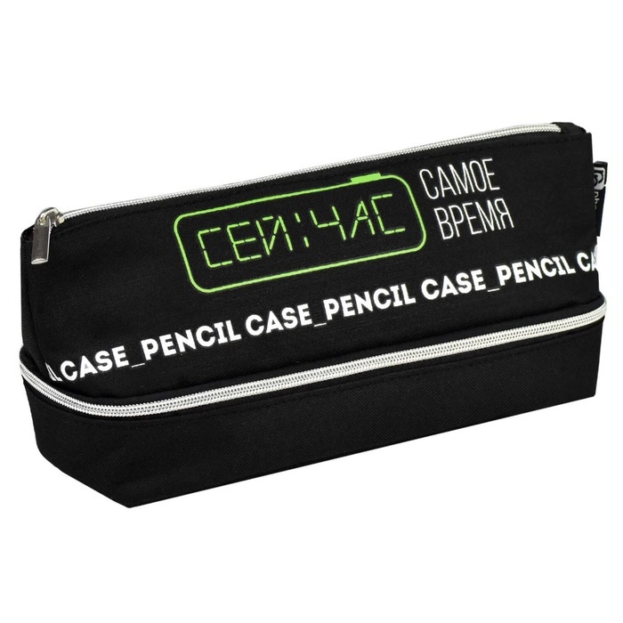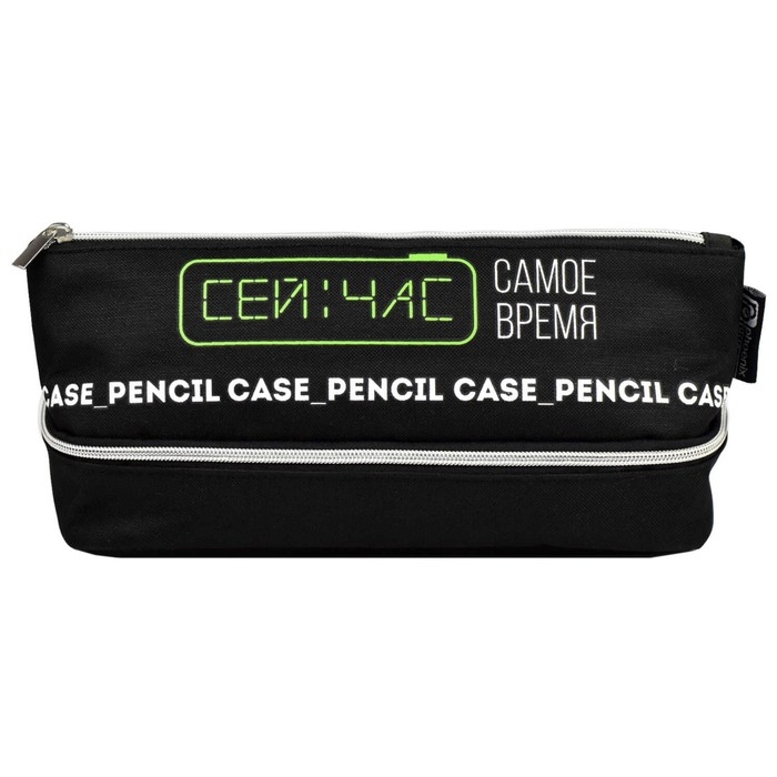 Пенал мягкий, 1 отделение, 85 х 200 х 85 мм, объёмный, Феникс "Фразы с характером" чёрный 65250