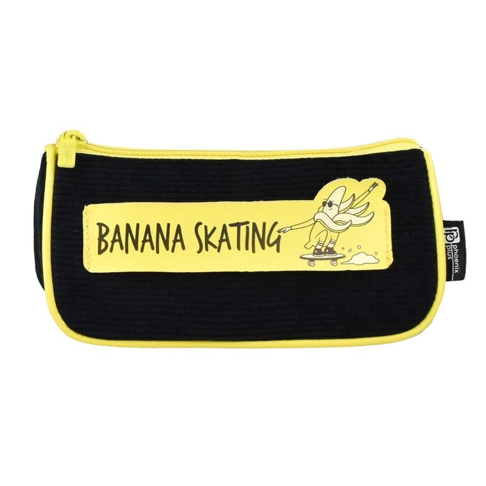 Пенал мягкий, 1 отделение, 85 х 220 х 55 мм, объёмный, Феникс "Банана на борде" чёрный/жёлтый 62081